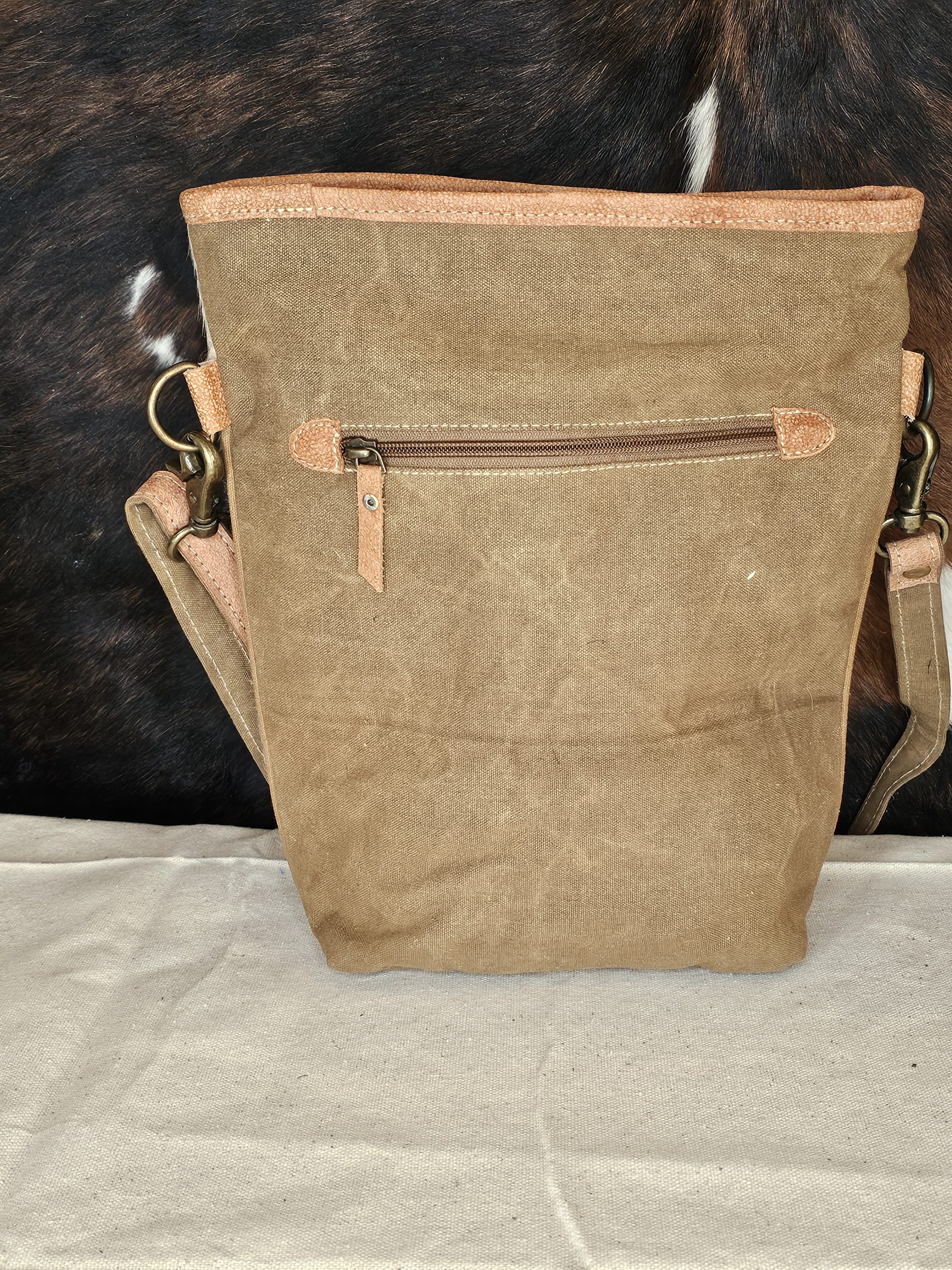 Ohlay Messenger Upcycled Canvas Hair On Genuine Leather
